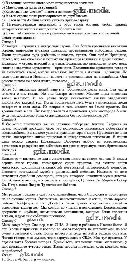 ОТВЕТ на задание № 1 Учебник по Английскому языку 10 класс Афанасьева Rainbow Базовый уровень