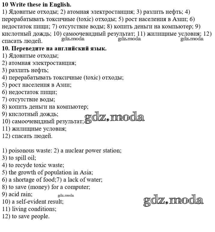 ОТВЕТ на задание № 10 Учебник по Английскому языку 10 класс Афанасьева Rainbow Базовый уровень