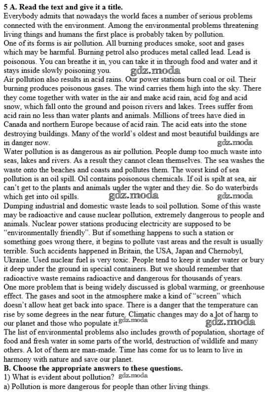 ОТВЕТ на задание № 5 Учебник по Английскому языку 10 класс Афанасьева Rainbow Базовый уровень