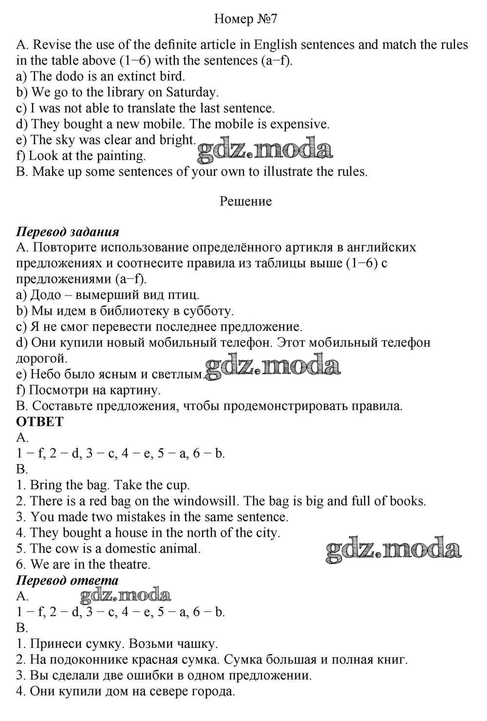 ОТВЕТ на задание № 7 Учебник по Английскому языку 10 класс Афанасьева Rainbow Базовый уровень