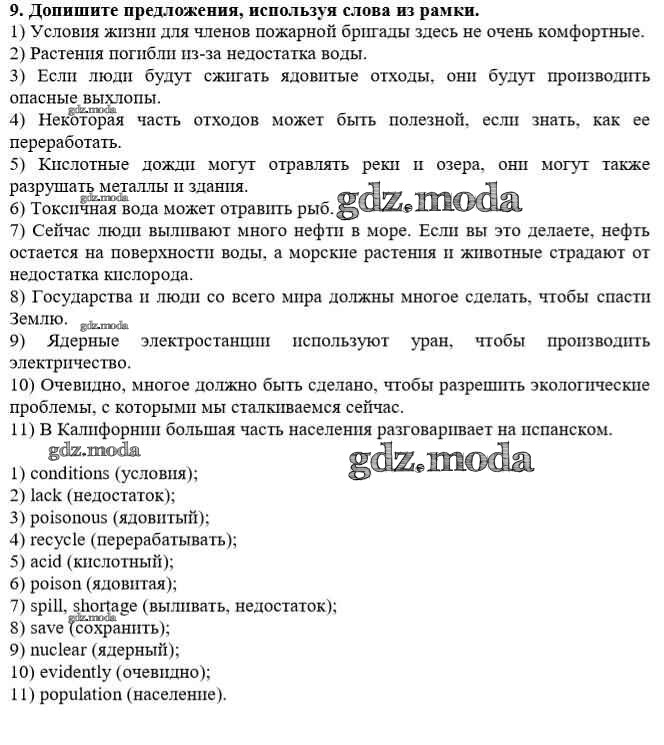 ОТВЕТ на задание № 9 Учебник по Английскому языку 10 класс Афанасьева Rainbow Базовый уровень