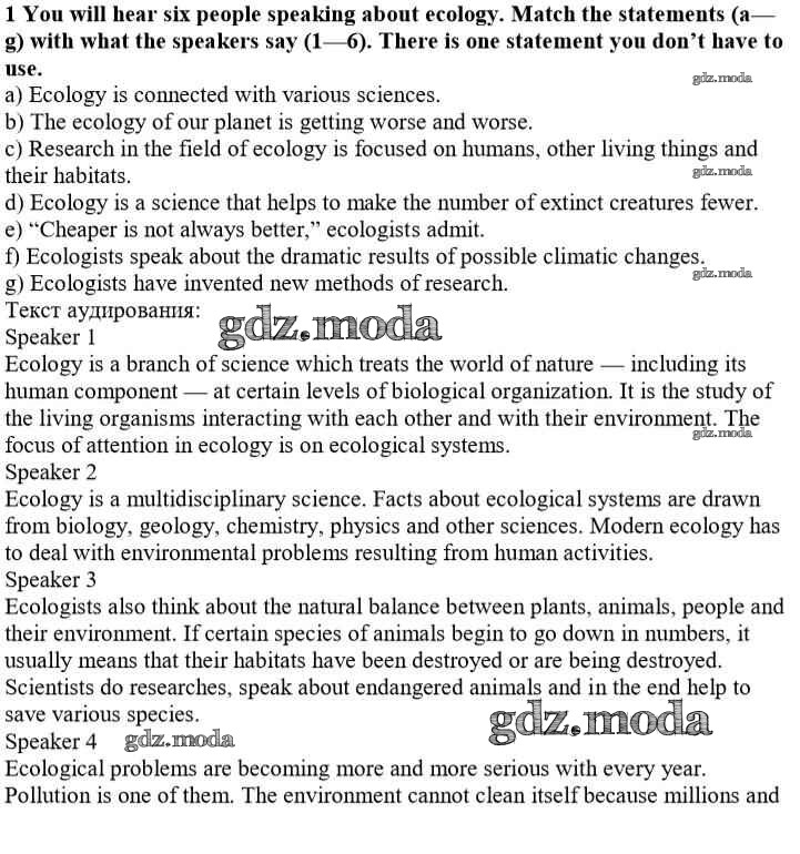 ОТВЕТ на задание № 1 Учебник по Английскому языку 10 класс Афанасьева Rainbow Базовый уровень