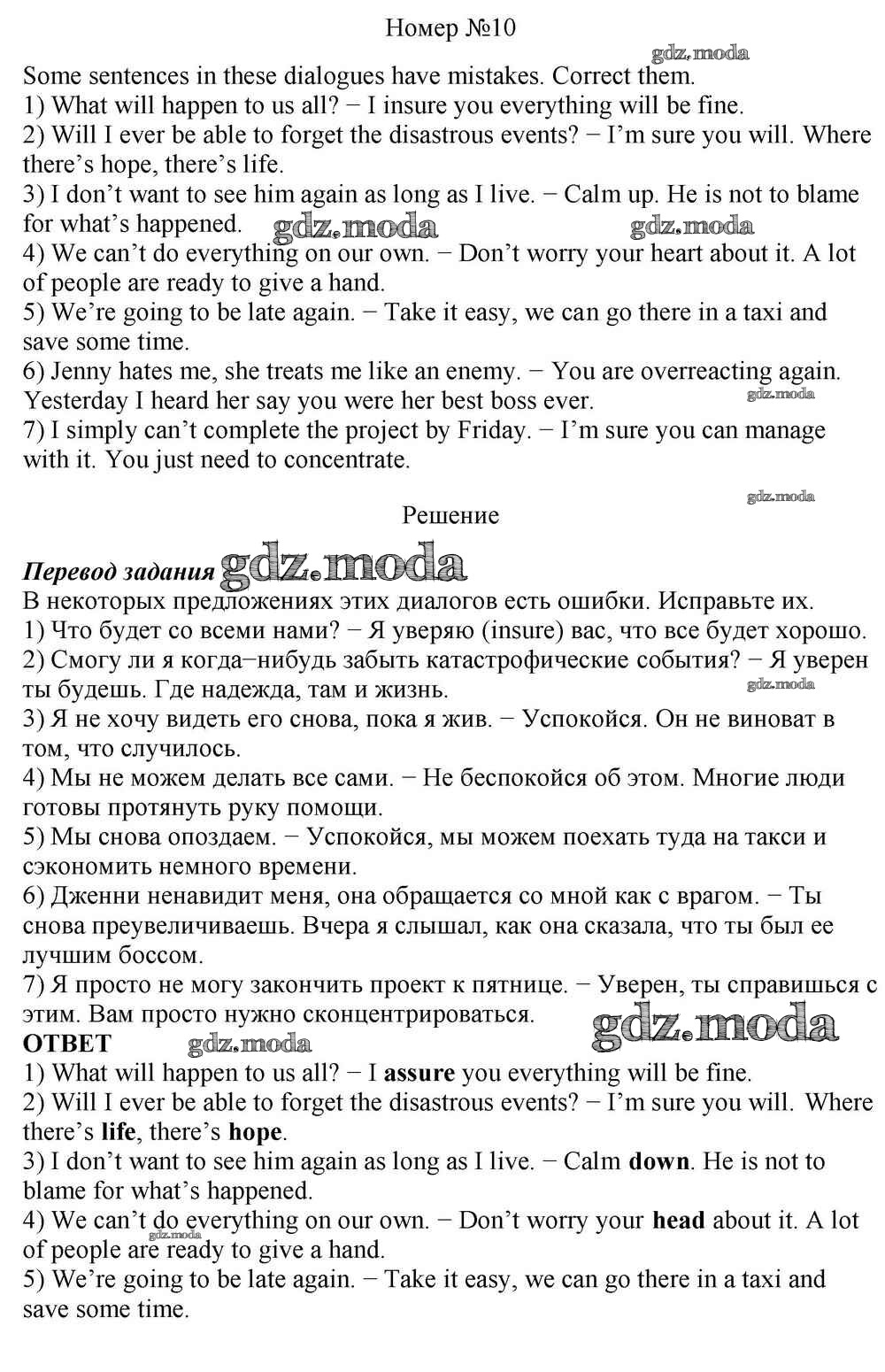 ОТВЕТ на задание № 10 Учебник по Английскому языку 10 класс Афанасьева Rainbow Базовый уровень