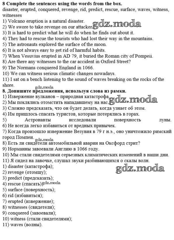 ОТВЕТ на задание № 8 Учебник по Английскому языку 10 класс Афанасьева Rainbow Базовый уровень