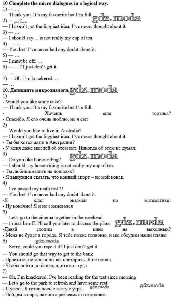ОТВЕТ на задание № 10 Учебник по Английскому языку 10 класс Афанасьева Rainbow Базовый уровень