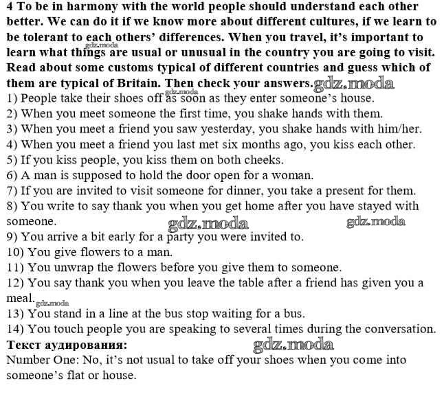 ОТВЕТ на задание № 4 Учебник по Английскому языку 10 класс Афанасьева Rainbow Базовый уровень