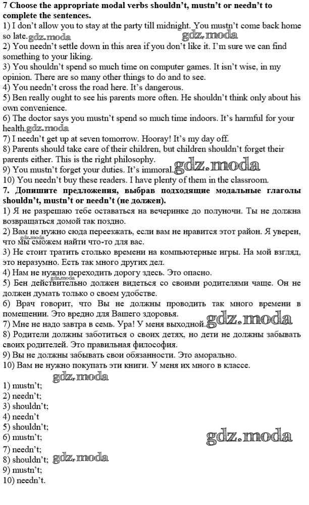 ОТВЕТ на задание № 7 Учебник по Английскому языку 10 класс Афанасьева Rainbow Базовый уровень