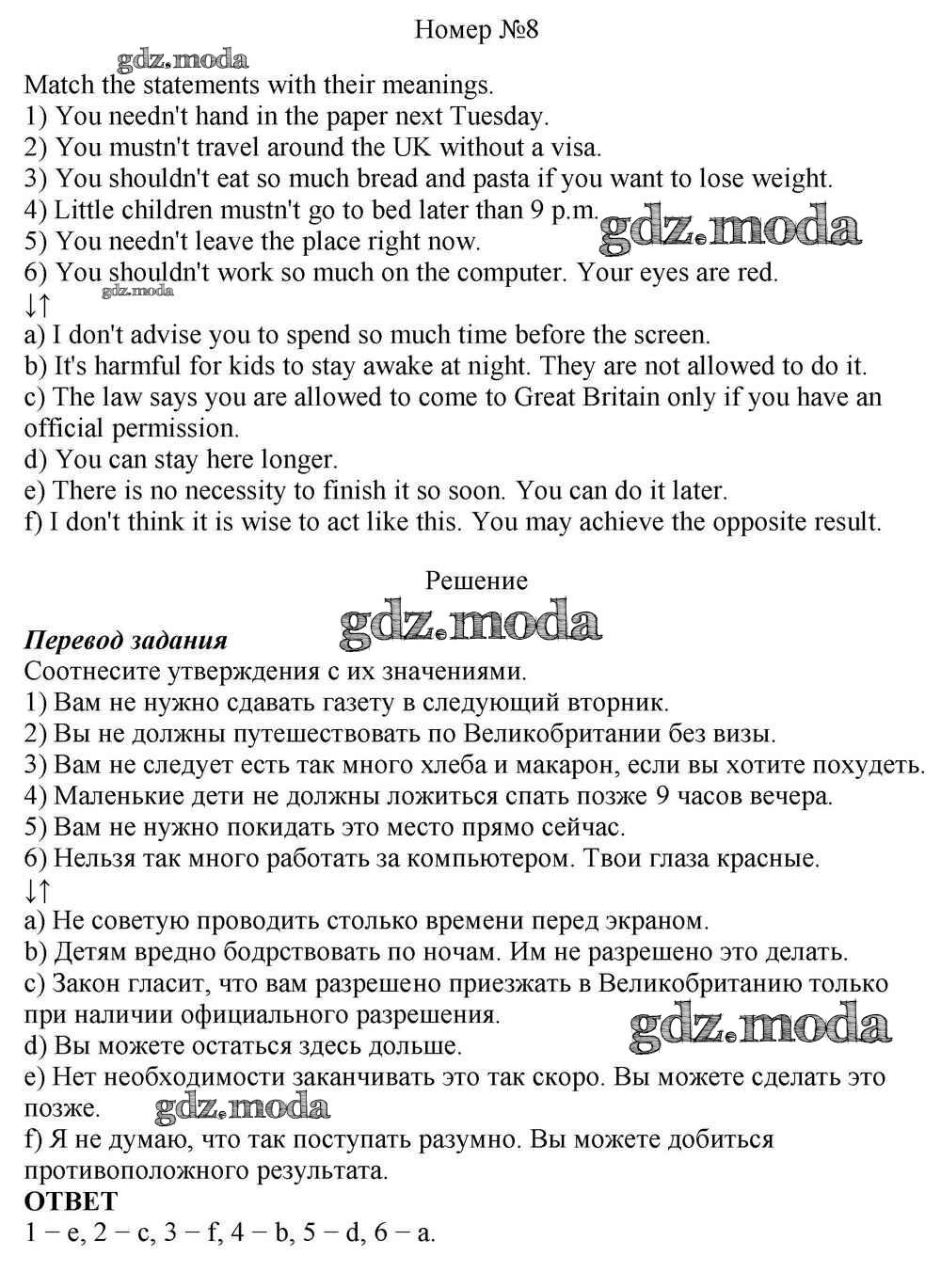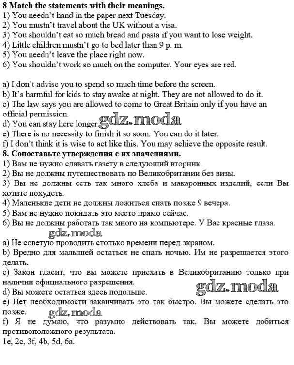 ОТВЕТ на задание № 8 Учебник по Английскому языку 10 класс Афанасьева Rainbow Базовый уровень