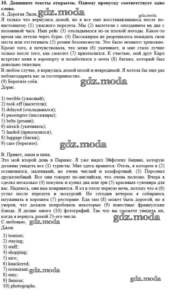 ОТВЕТ на задание № 10 Учебник по Английскому языку 10 класс Афанасьева Rainbow Базовый уровень