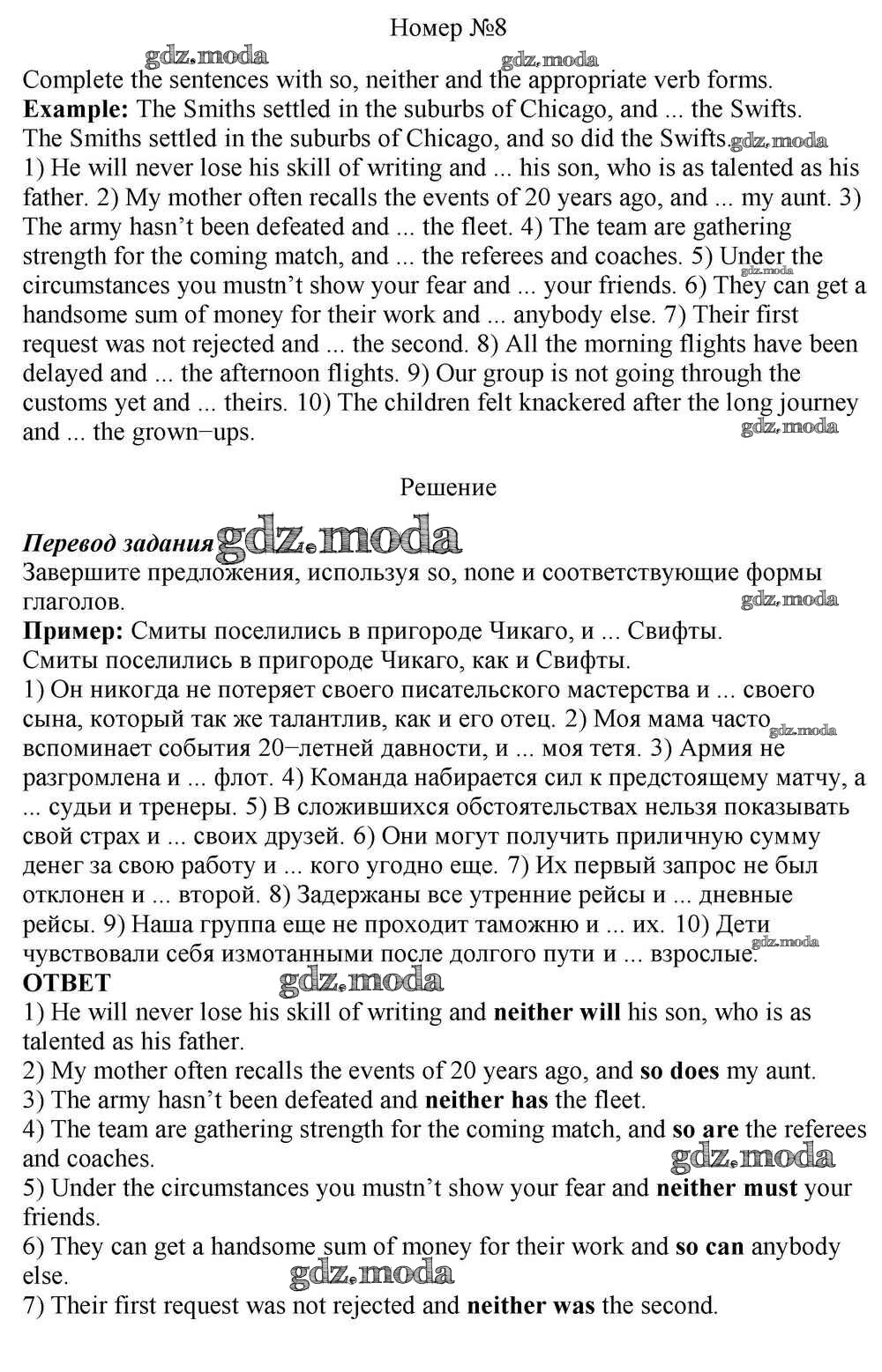 ОТВЕТ на задание № 8 Учебник по Английскому языку 10 класс Афанасьева Rainbow Базовый уровень
