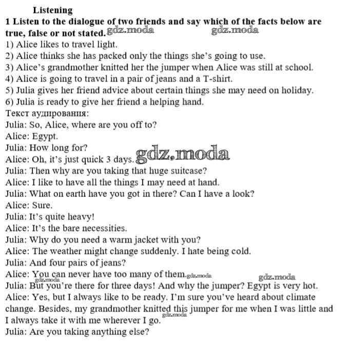 ОТВЕТ на задание № 1 Учебник по Английскому языку 10 класс Афанасьева Rainbow Базовый уровень