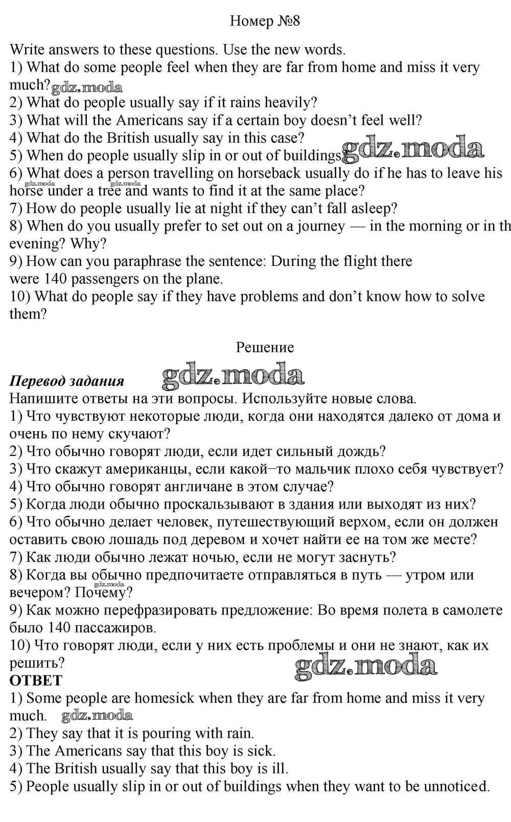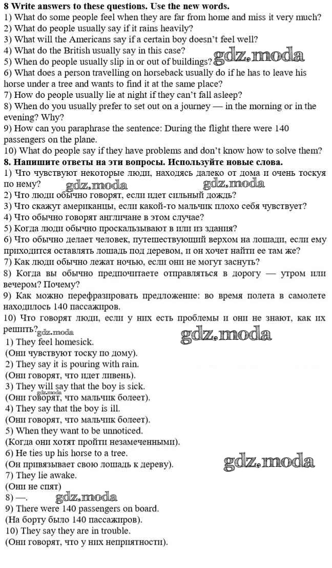 ОТВЕТ на задание № 8 Учебник по Английскому языку 10 класс Афанасьева Rainbow Базовый уровень