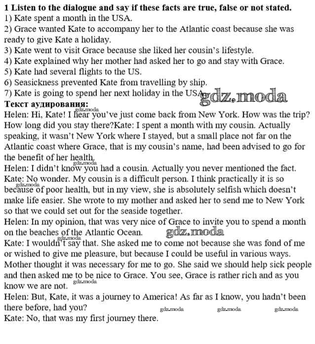 ОТВЕТ на задание № 1 Учебник по Английскому языку 10 класс Афанасьева Rainbow Базовый уровень