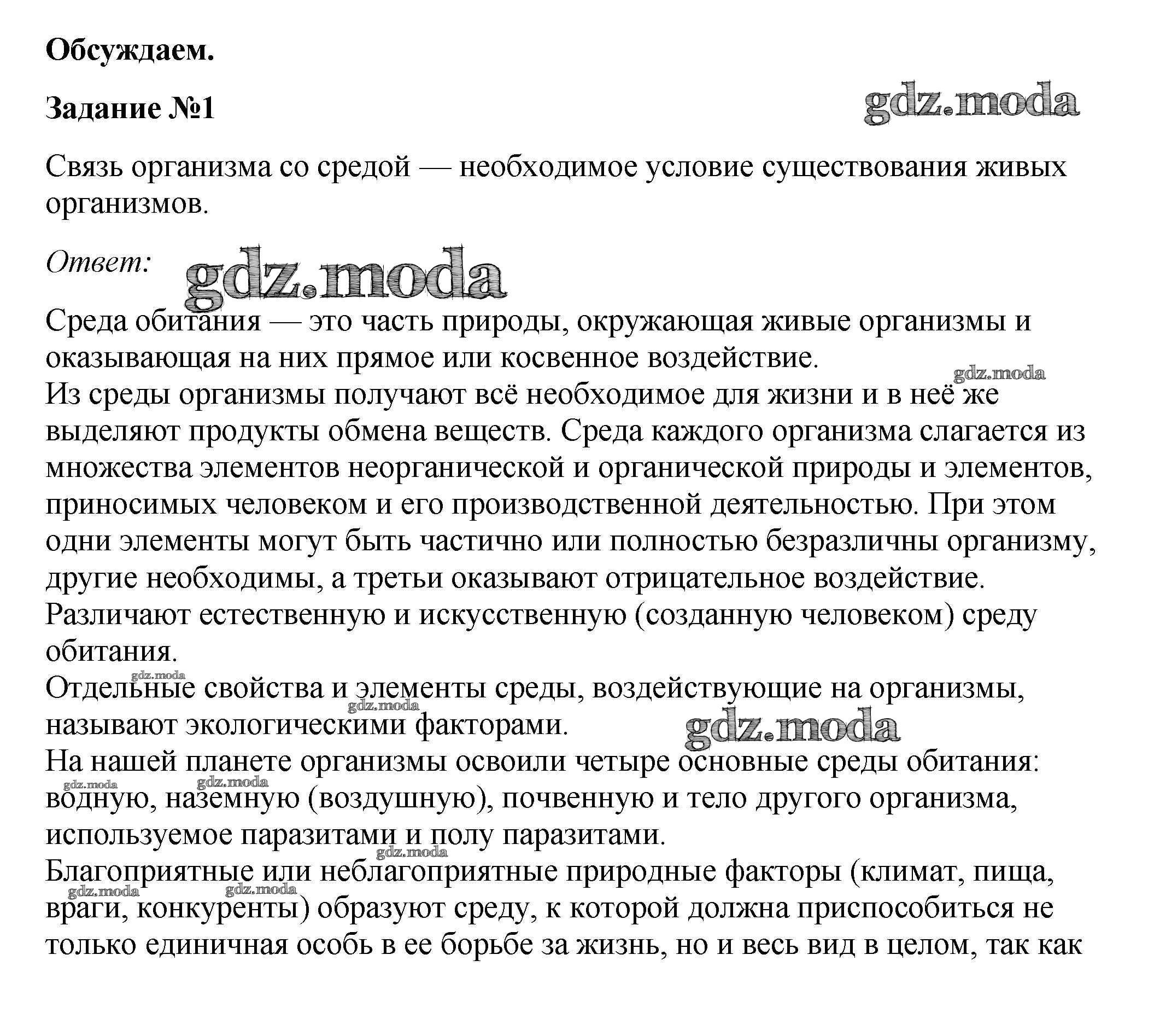 ГДЗ решение к заданию № 1 Биология 10 класс Пасечник В.В. Просвещение 2018 ФГОС бесплатно на гдз.мода!
