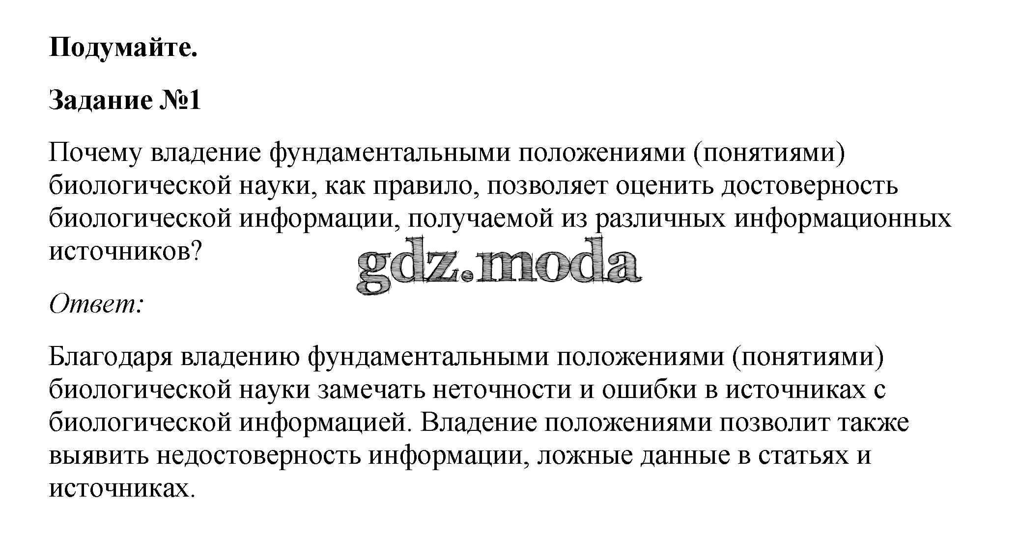 ГДЗ решение к заданию № 1 Биология 10 класс Пасечник В.В. Просвещение 2018 ФГОС бесплатно на гдз.мода!