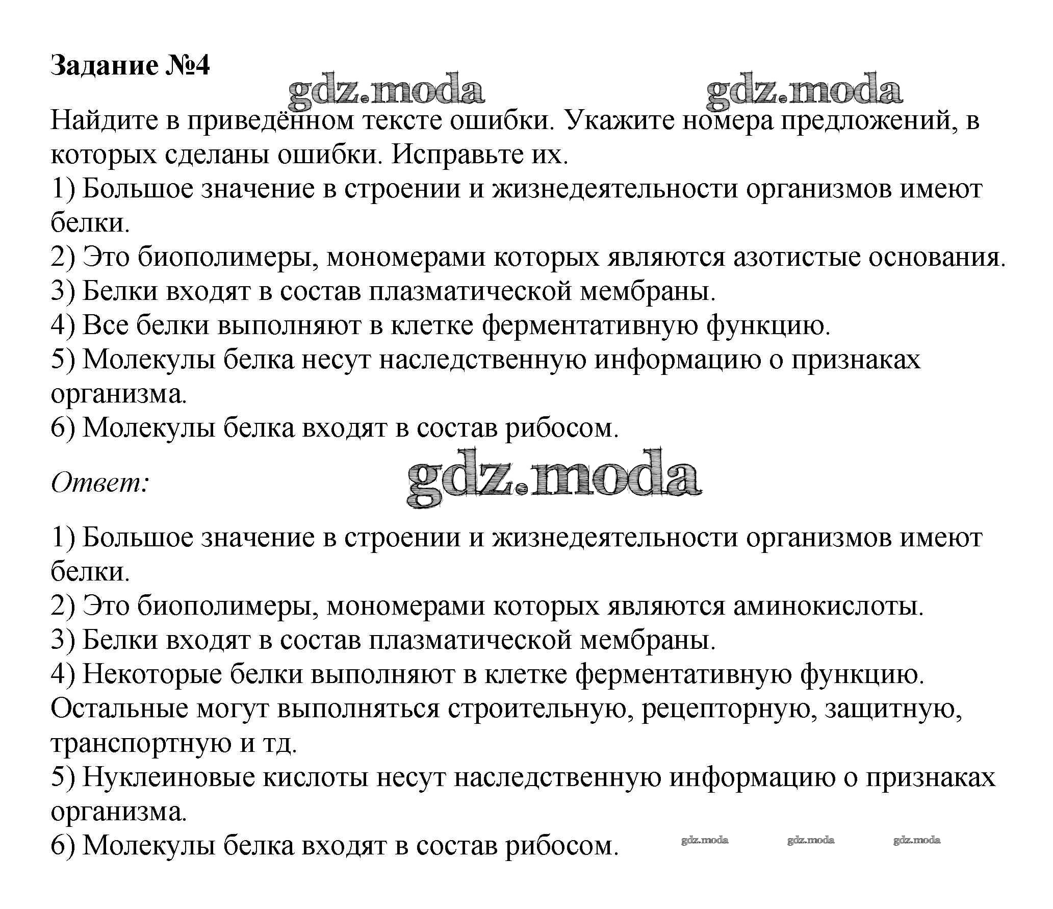 ГДЗ решение к заданию № 4 Биология 10 класс Пасечник В.В. Просвещение 2018 ФГОС бесплатно на гдз.мода!