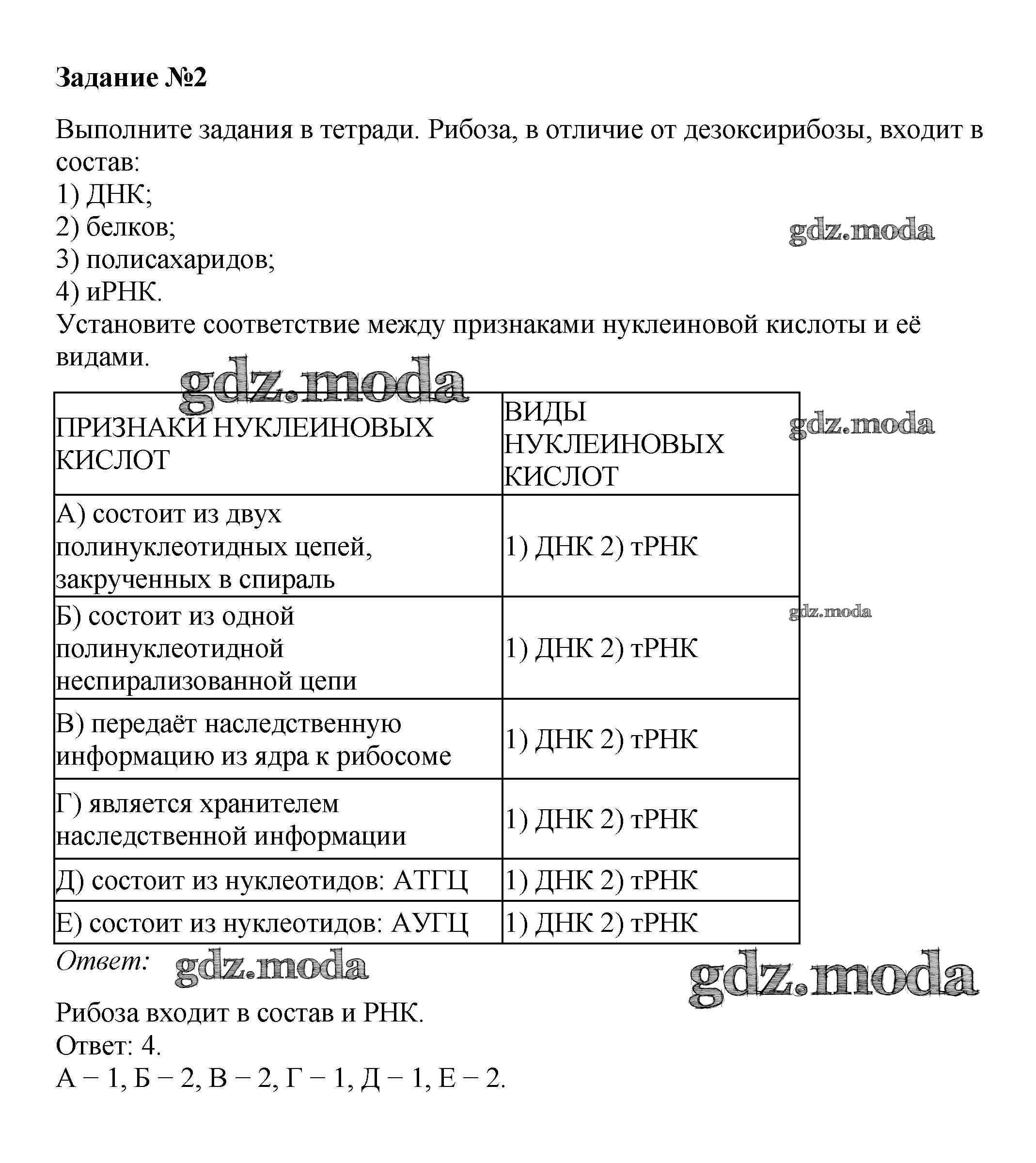 ГДЗ решение к заданию № 2 Биология 10 класс Пасечник В.В. Просвещение 2018 ФГОС бесплатно на гдз.мода!