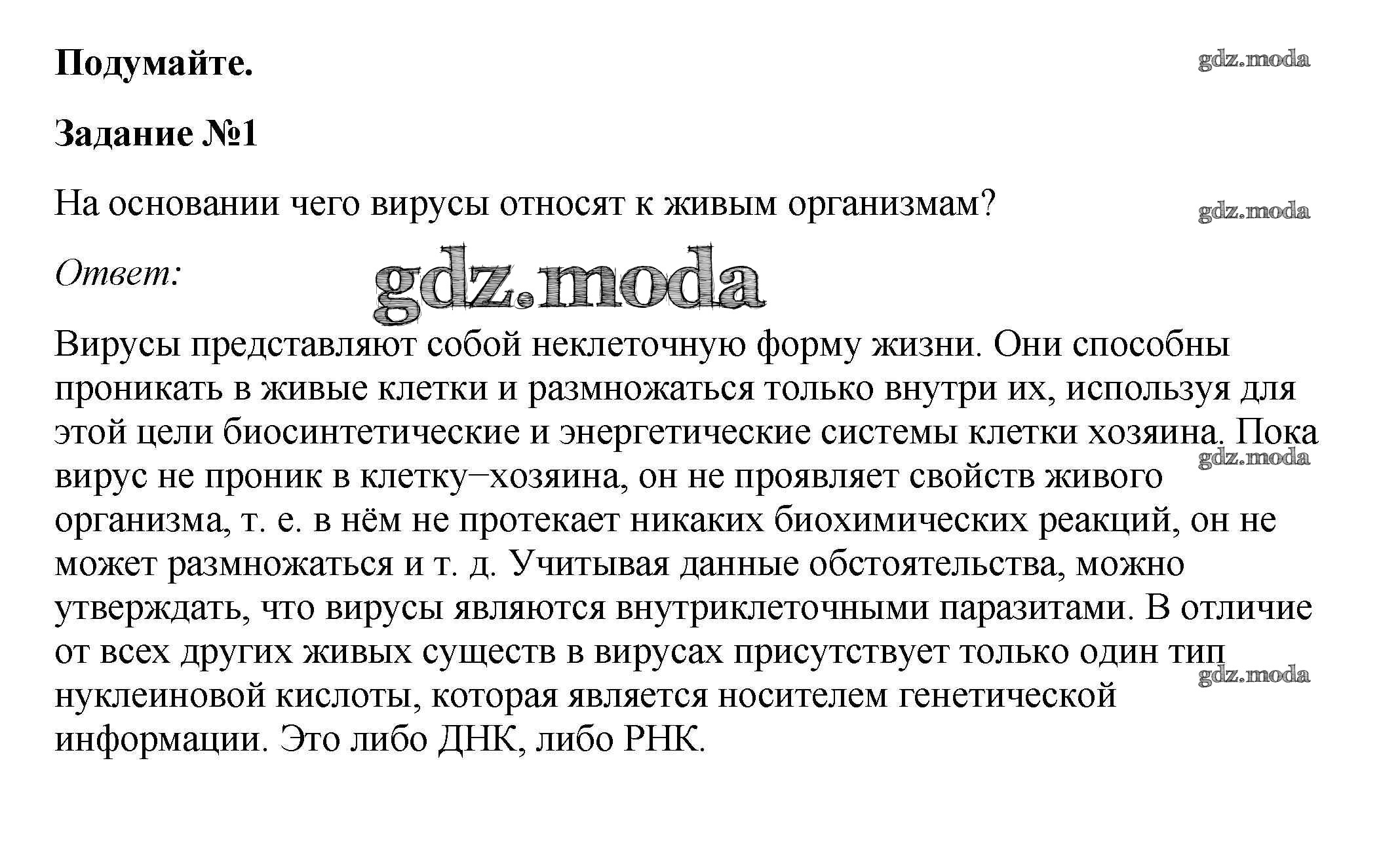 ГДЗ решение к заданию № 1 Биология 10 класс Пасечник В.В. Просвещение 2018 ФГОС бесплатно на гдз.мода!