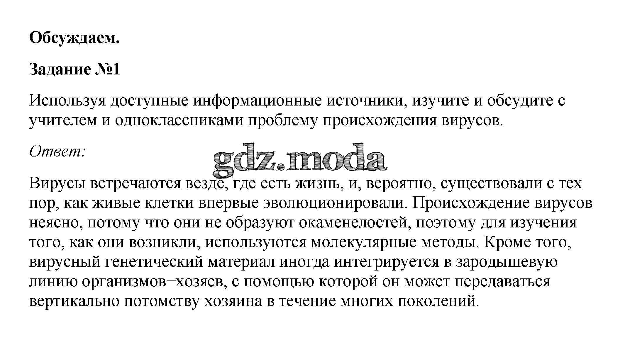 ГДЗ решение к заданию № 1 Биология 10 класс Пасечник В.В. Просвещение 2018 ФГОС бесплатно на гдз.мода!