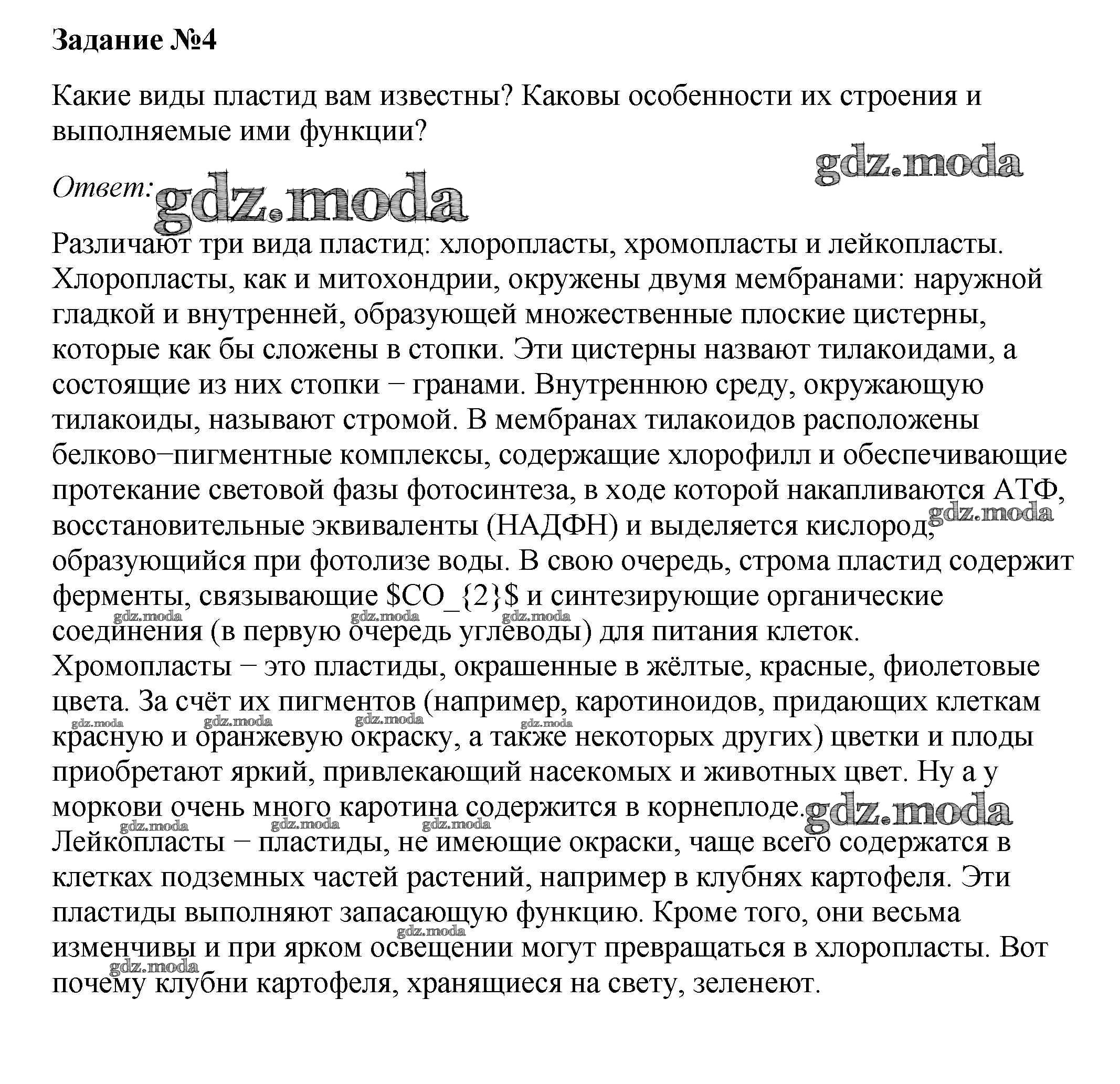 ГДЗ решение к заданию № 4 Биология 10 класс Пасечник В.В. Просвещение 2018 ФГОС бесплатно на гдз.мода!