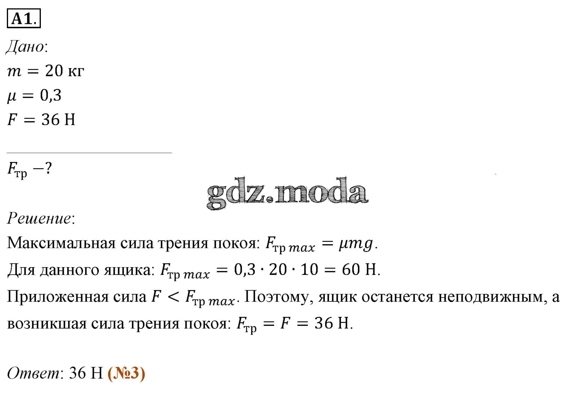 ОТВЕТ на задание № 36 Учебник по Физике 10 класс Мякишев Базовый уровень