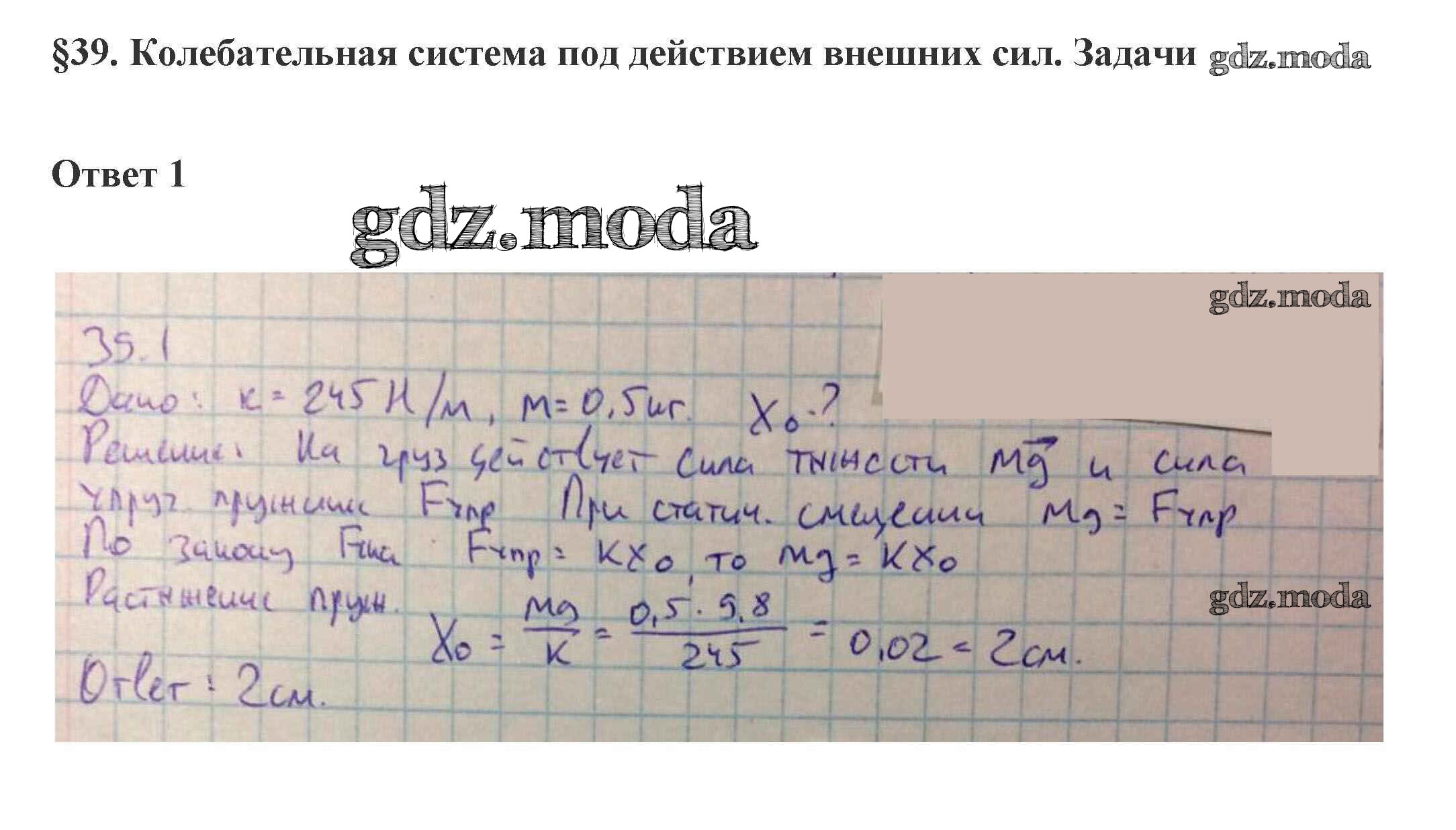 ОТВЕТ на задание № 1 Учебник по Физике 10 класс Касьянов