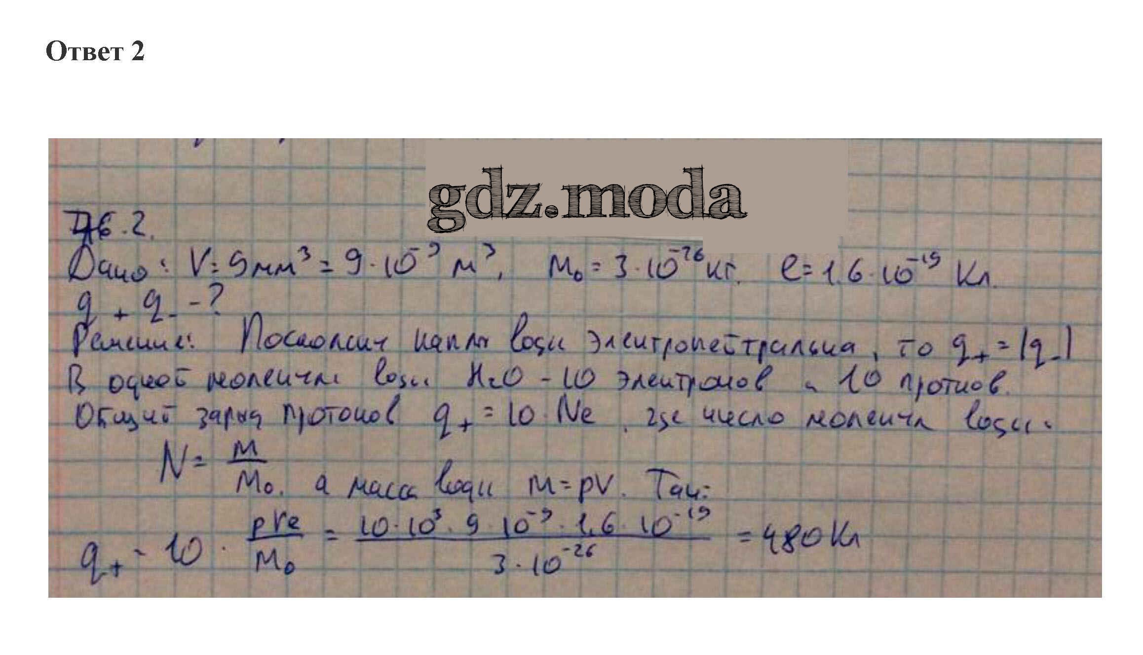 ОТВЕТ на задание № 2 Учебник по Физике 10 класс Касьянов