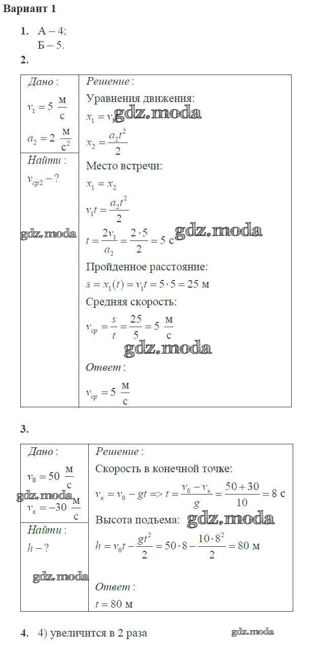 ГДЗ решение к заданию № 1 Физика 10 класс самостоятельные и контрольные работы Ерюткин Е.С. Просвещение 2018 Базовый и углубленный уровень ФГОС бесплатно на гдз.мода!