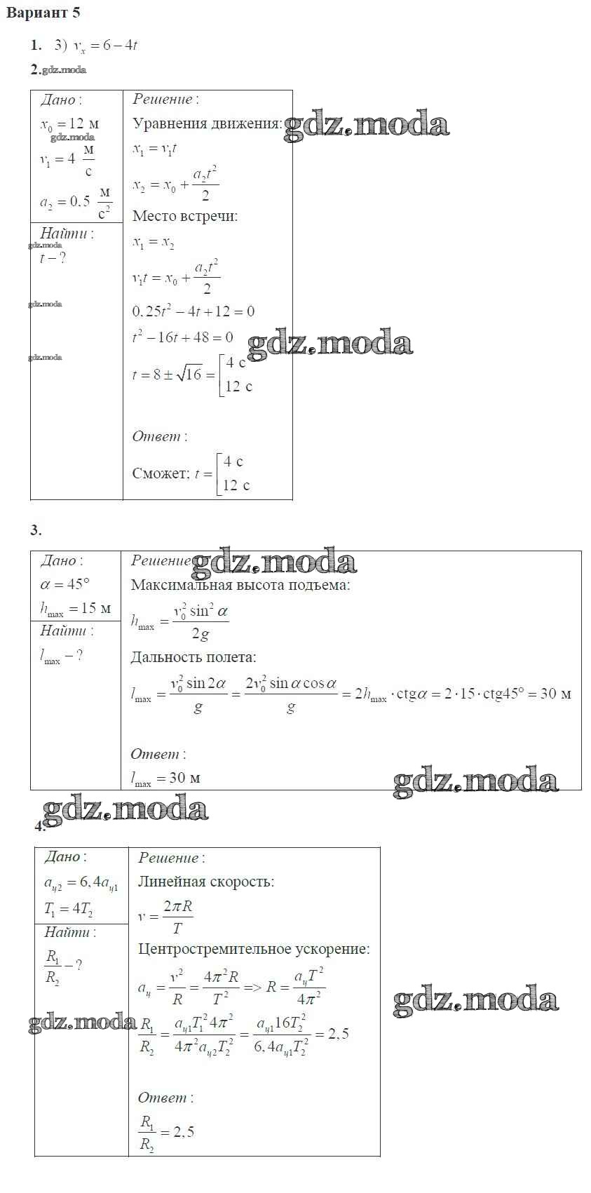 ГДЗ решение к заданию № 5 Физика 10 класс самостоятельные и контрольные работы Ерюткин Е.С. Просвещение 2018 Базовый и углубленный уровень ФГОС бесплатно на гдз.мода!