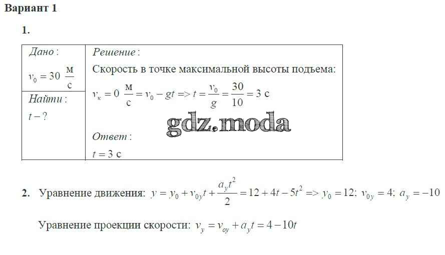 ГДЗ решение к заданию № 1 Физика 10 класс самостоятельные и контрольные работы Ерюткин Е.С. Просвещение 2018 Базовый и углубленный уровень ФГОС бесплатно на гдз.мода!