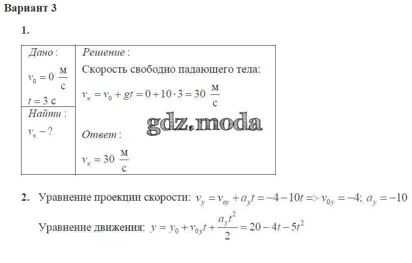 ГДЗ решение к заданию № 3 Физика 10 класс самостоятельные и контрольные работы Ерюткин Е.С. Просвещение 2018 Базовый и углубленный уровень ФГОС бесплатно на гдз.мода!