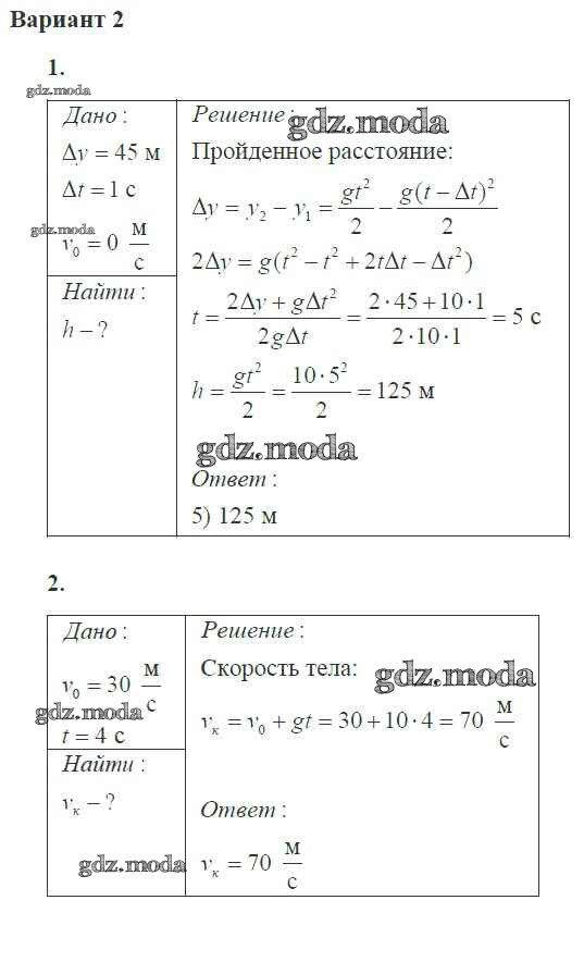 ГДЗ решение к заданию № 2 Физика 10 класс самостоятельные и контрольные работы Ерюткин Е.С. Просвещение 2018 Базовый и углубленный уровень ФГОС бесплатно на гдз.мода!