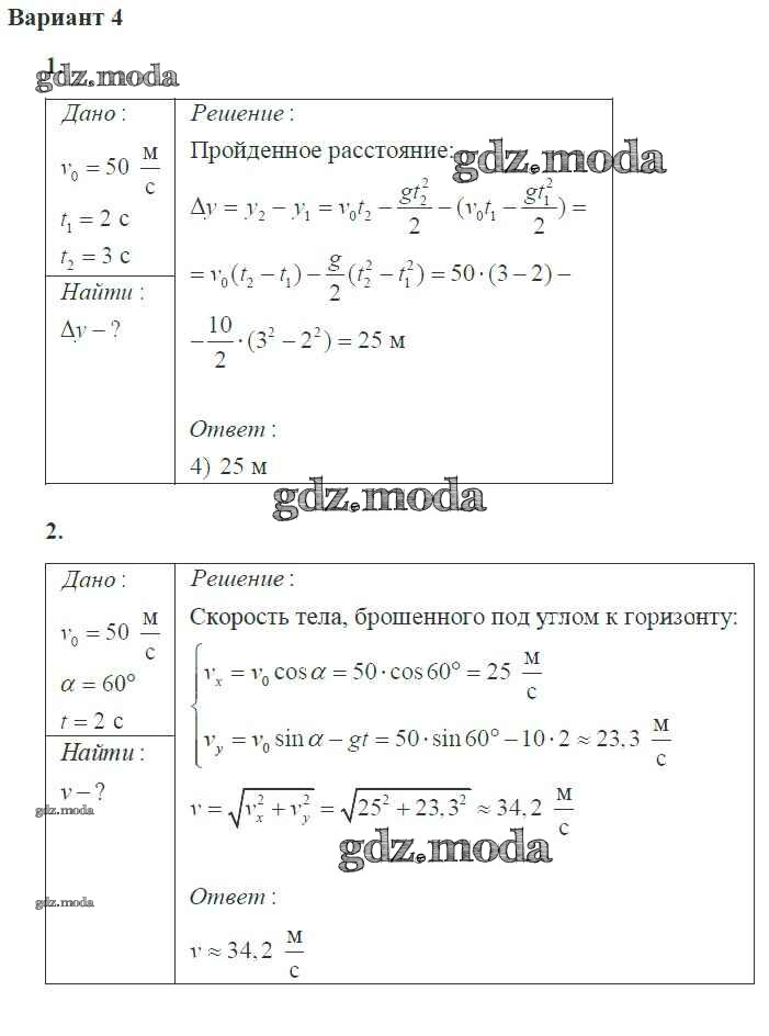 ГДЗ решение к заданию № 4 Физика 10 класс самостоятельные и контрольные работы Ерюткин Е.С. Просвещение 2018 Базовый и углубленный уровень ФГОС бесплатно на гдз.мода!