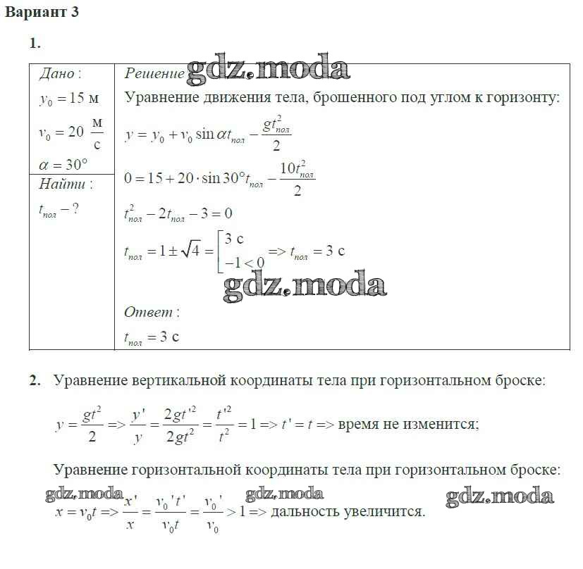 ГДЗ решение к заданию № 3 Физика 10 класс самостоятельные и контрольные работы Ерюткин Е.С. Просвещение 2018 Базовый и углубленный уровень ФГОС бесплатно на гдз.мода!