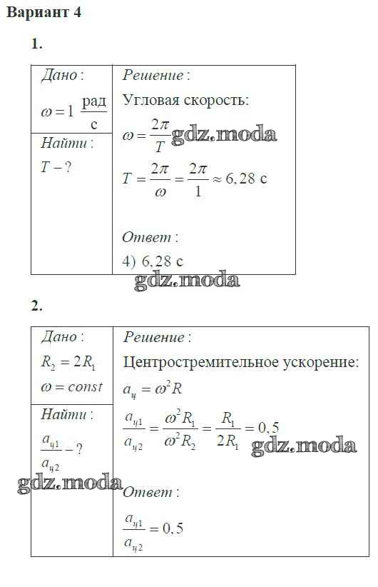 ГДЗ решение к заданию № 4 Физика 10 класс самостоятельные и контрольные работы Ерюткин Е.С. Просвещение 2018 Базовый и углубленный уровень ФГОС бесплатно на гдз.мода!