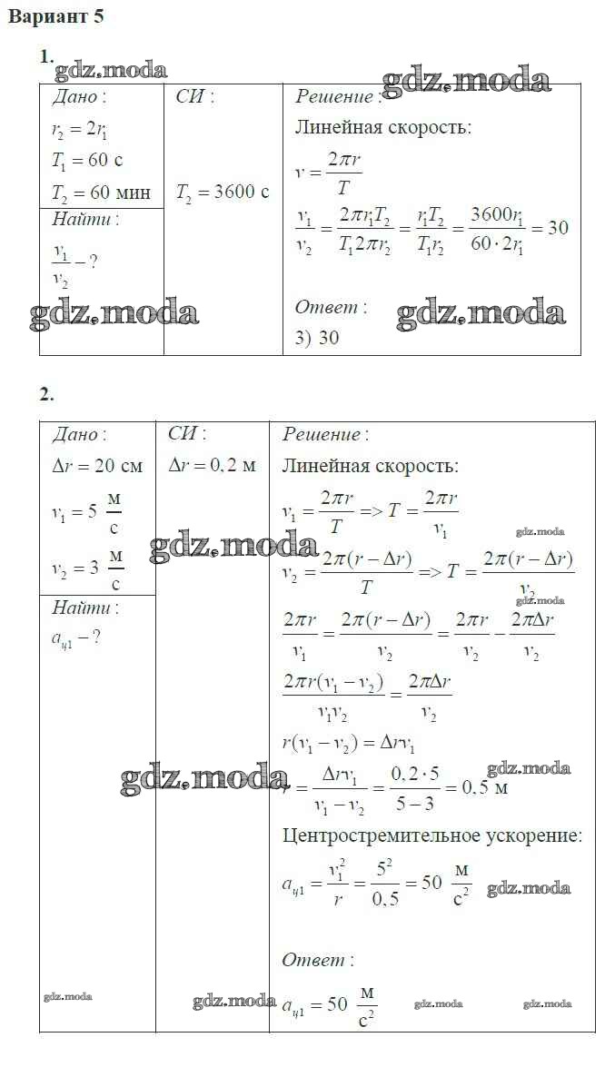 ГДЗ решение к заданию № 5 Физика 10 класс самостоятельные и контрольные работы Ерюткин Е.С. Просвещение 2018 Базовый и углубленный уровень ФГОС бесплатно на гдз.мода!