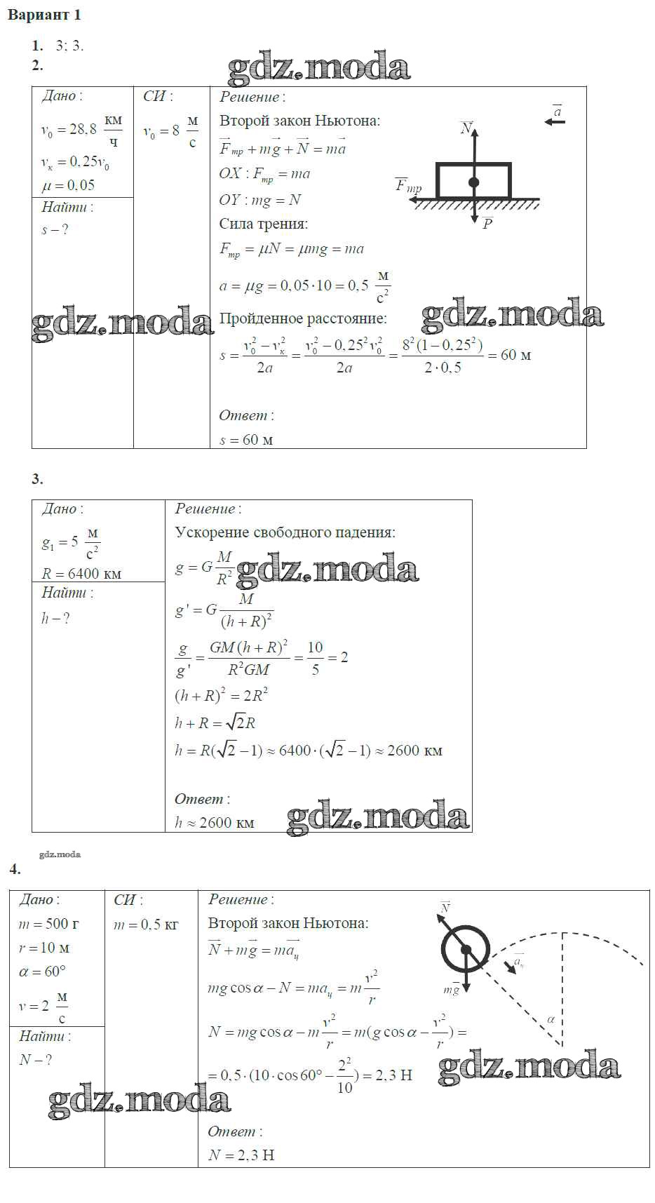 ГДЗ решение к заданию № 1 Физика 10 класс самостоятельные и контрольные работы Ерюткин Е.С. Просвещение 2018 Базовый и углубленный уровень ФГОС бесплатно на гдз.мода!
