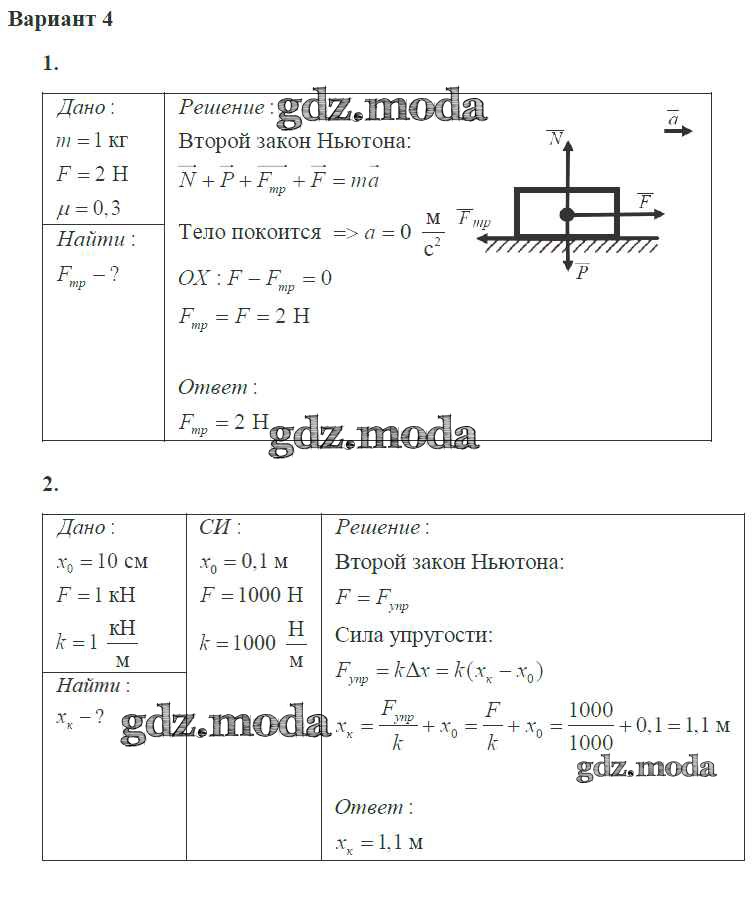 ГДЗ решение к заданию № 4 Физика 10 класс самостоятельные и контрольные работы Ерюткин Е.С. Просвещение 2018 Базовый и углубленный уровень ФГОС бесплатно на гдз.мода!