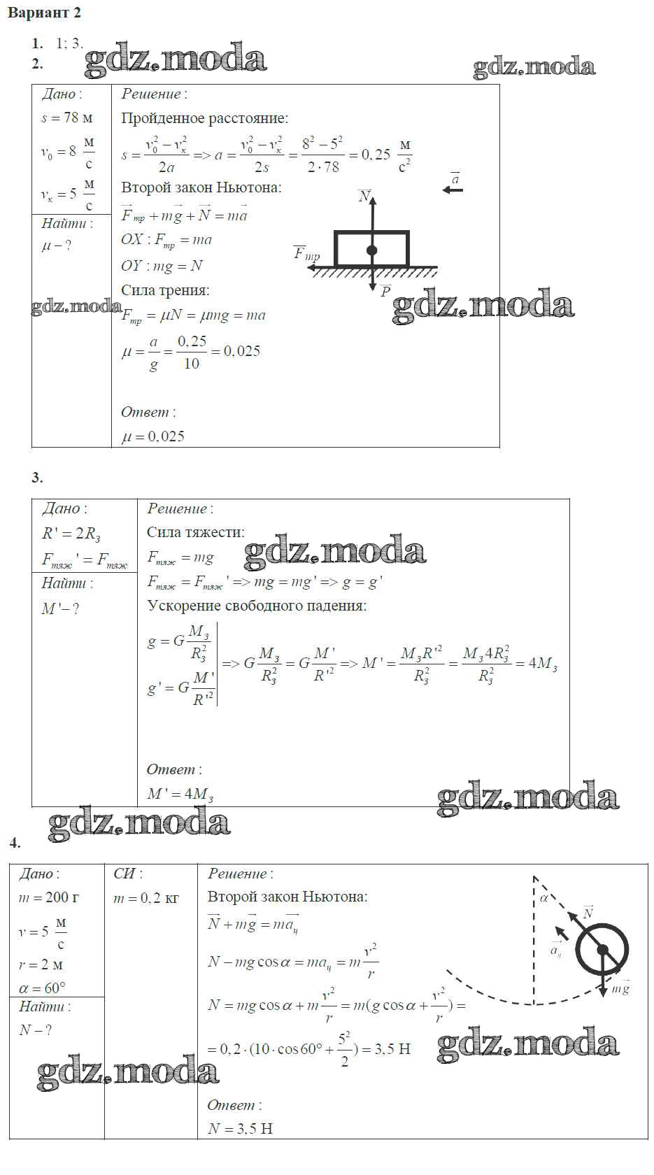 ГДЗ решение к заданию № 2 Физика 10 класс самостоятельные и контрольные работы Ерюткин Е.С. Просвещение 2018 Базовый и углубленный уровень ФГОС бесплатно на гдз.мода!