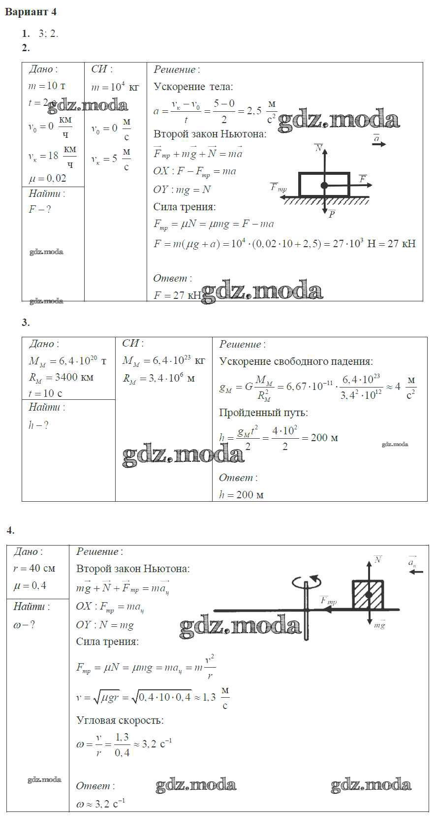 ГДЗ решение к заданию № 4 Физика 10 класс самостоятельные и контрольные работы Ерюткин Е.С. Просвещение 2018 Базовый и углубленный уровень ФГОС бесплатно на гдз.мода!