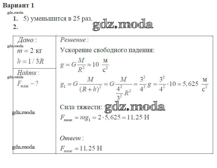 ГДЗ решение к заданию № 1 Физика 10 класс самостоятельные и контрольные работы Ерюткин Е.С. Просвещение 2018 Базовый и углубленный уровень ФГОС бесплатно на гдз.мода!