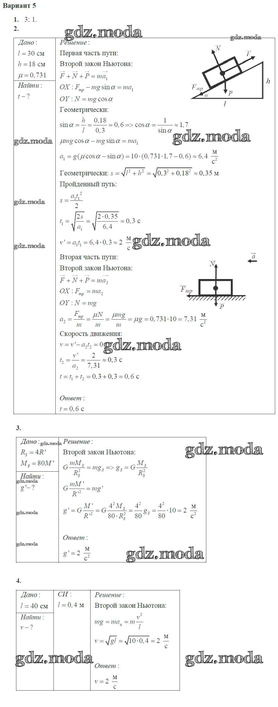 ГДЗ решение к заданию № 5 Физика 10 класс самостоятельные и контрольные работы Ерюткин Е.С. Просвещение 2018 Базовый и углубленный уровень ФГОС бесплатно на гдз.мода!
