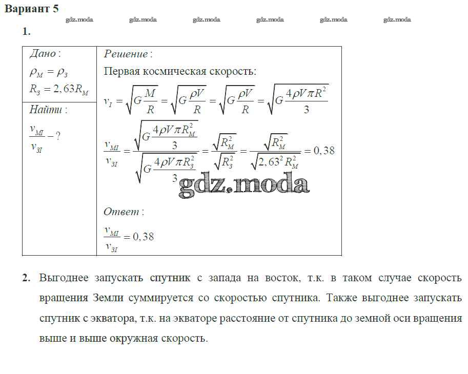 ГДЗ решение к заданию № 5 Физика 10 класс самостоятельные и контрольные работы Ерюткин Е.С. Просвещение 2018 Базовый и углубленный уровень ФГОС бесплатно на гдз.мода!