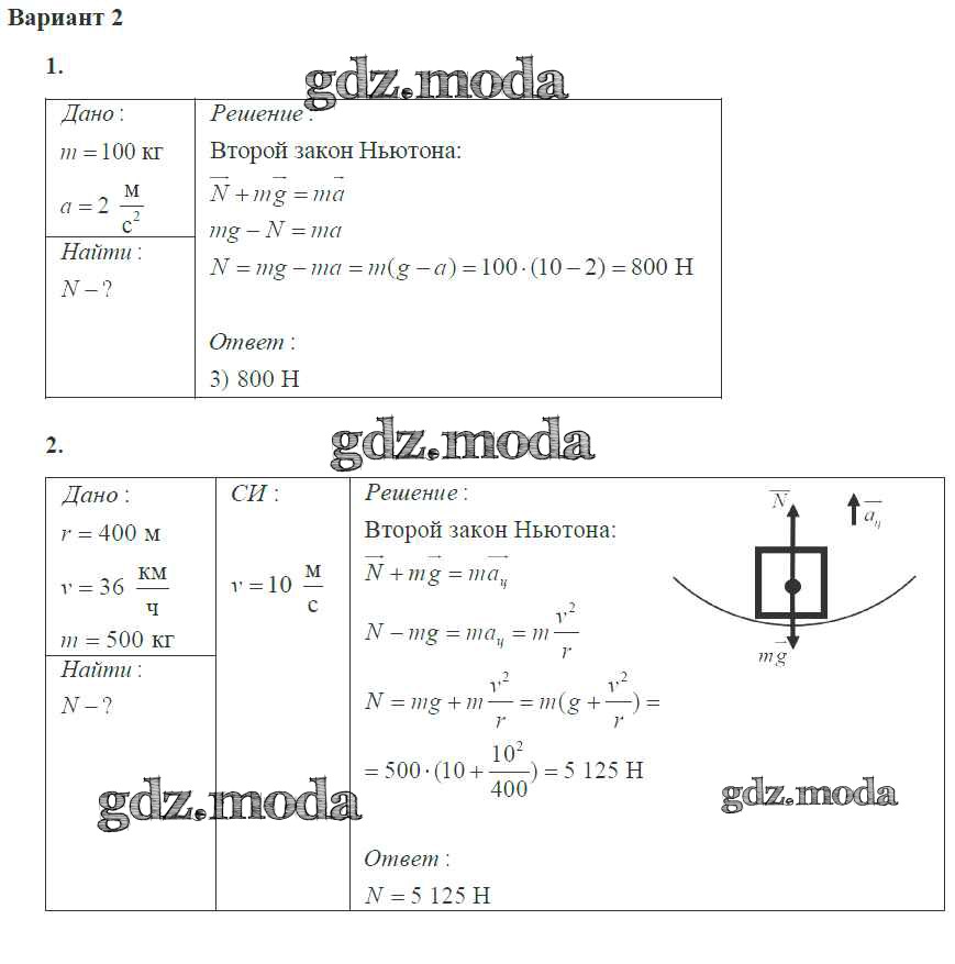 ГДЗ решение к заданию № 2 Физика 10 класс самостоятельные и контрольные работы Ерюткин Е.С. Просвещение 2018 Базовый и углубленный уровень ФГОС бесплатно на гдз.мода!
