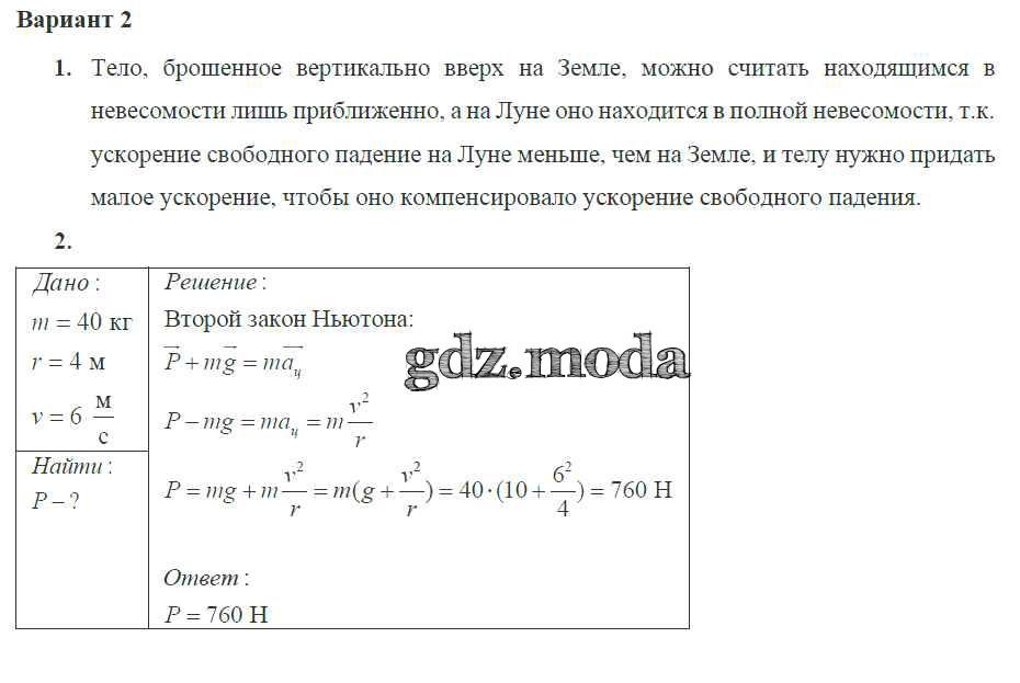 ГДЗ решение к заданию № 2 Физика 10 класс самостоятельные и контрольные работы Ерюткин Е.С. Просвещение 2018 Базовый и углубленный уровень ФГОС бесплатно на гдз.мода!