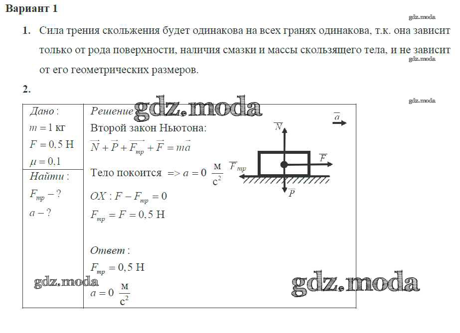 ГДЗ решение к заданию № 1 Физика 10 класс самостоятельные и контрольные работы Ерюткин Е.С. Просвещение 2018 Базовый и углубленный уровень ФГОС бесплатно на гдз.мода!