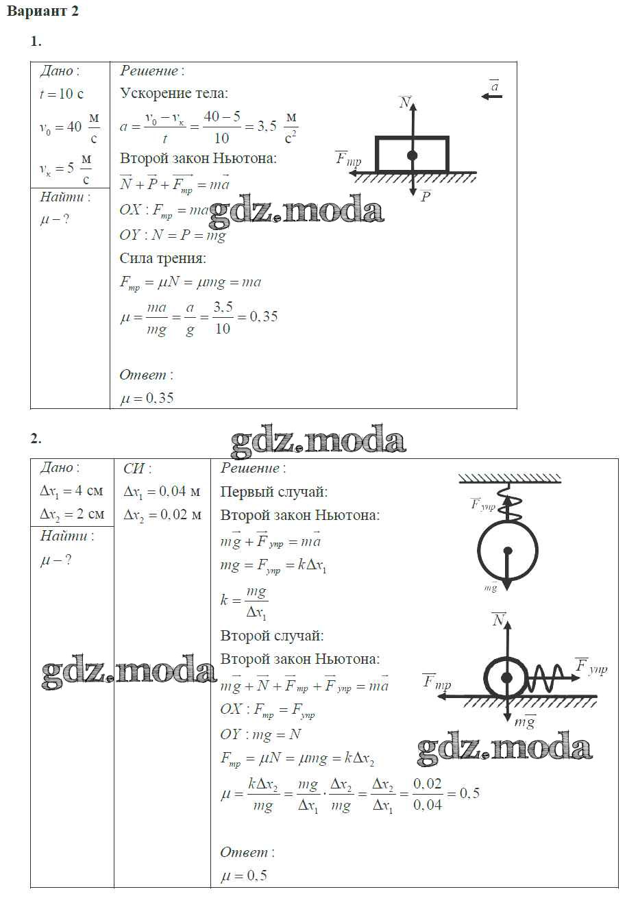 ГДЗ решение к заданию № 2 Физика 10 класс самостоятельные и контрольные работы Ерюткин Е.С. Просвещение 2018 Базовый и углубленный уровень ФГОС бесплатно на гдз.мода!