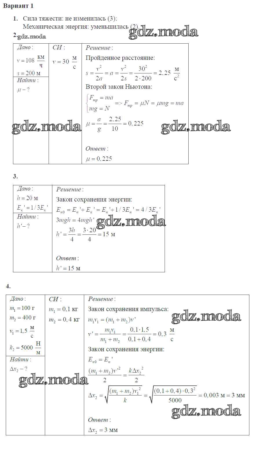 ГДЗ решение к заданию № 1 Физика 10 класс самостоятельные и контрольные работы Ерюткин Е.С. Просвещение 2018 Базовый и углубленный уровень ФГОС бесплатно на гдз.мода!