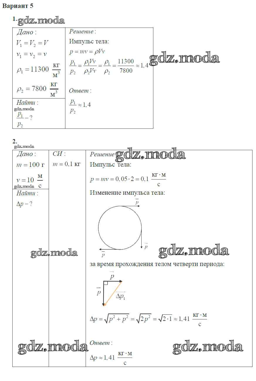 ГДЗ решение к заданию № 5 Физика 10 класс самостоятельные и контрольные работы Ерюткин Е.С. Просвещение 2018 Базовый и углубленный уровень ФГОС бесплатно на гдз.мода!