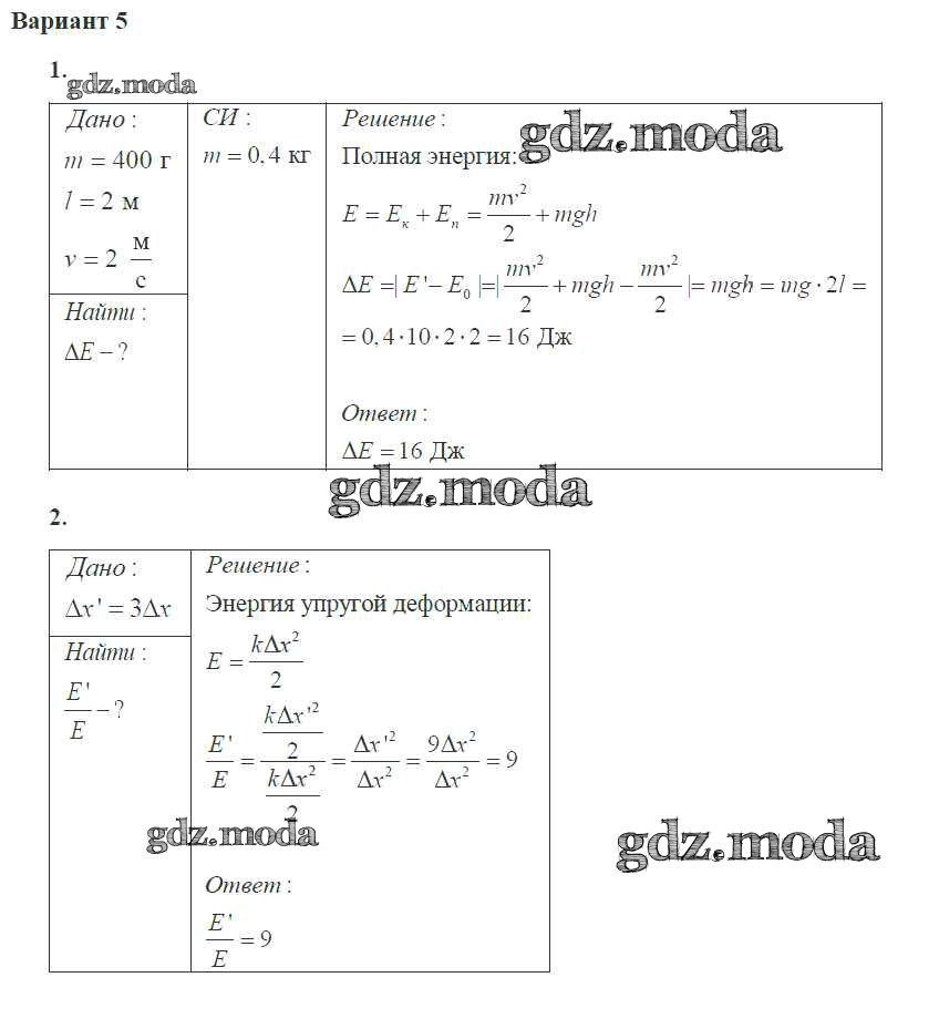 ГДЗ решение к заданию № 5 Физика 10 класс самостоятельные и контрольные работы Ерюткин Е.С. Просвещение 2018 Базовый и углубленный уровень ФГОС бесплатно на гдз.мода!